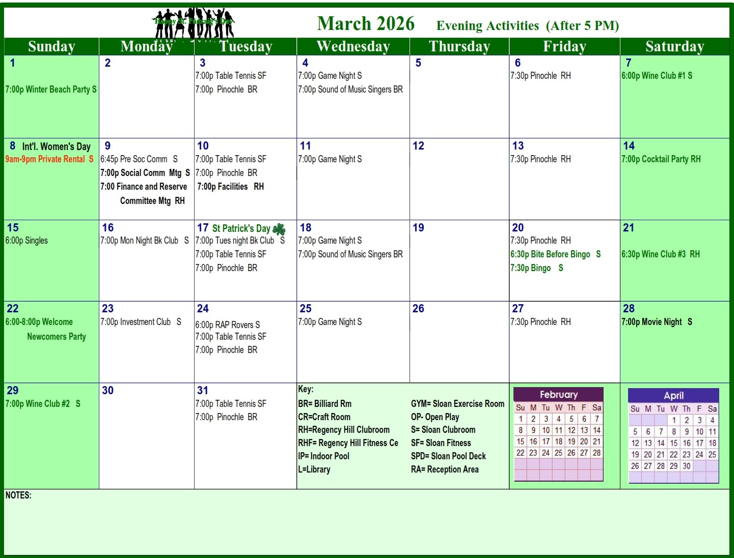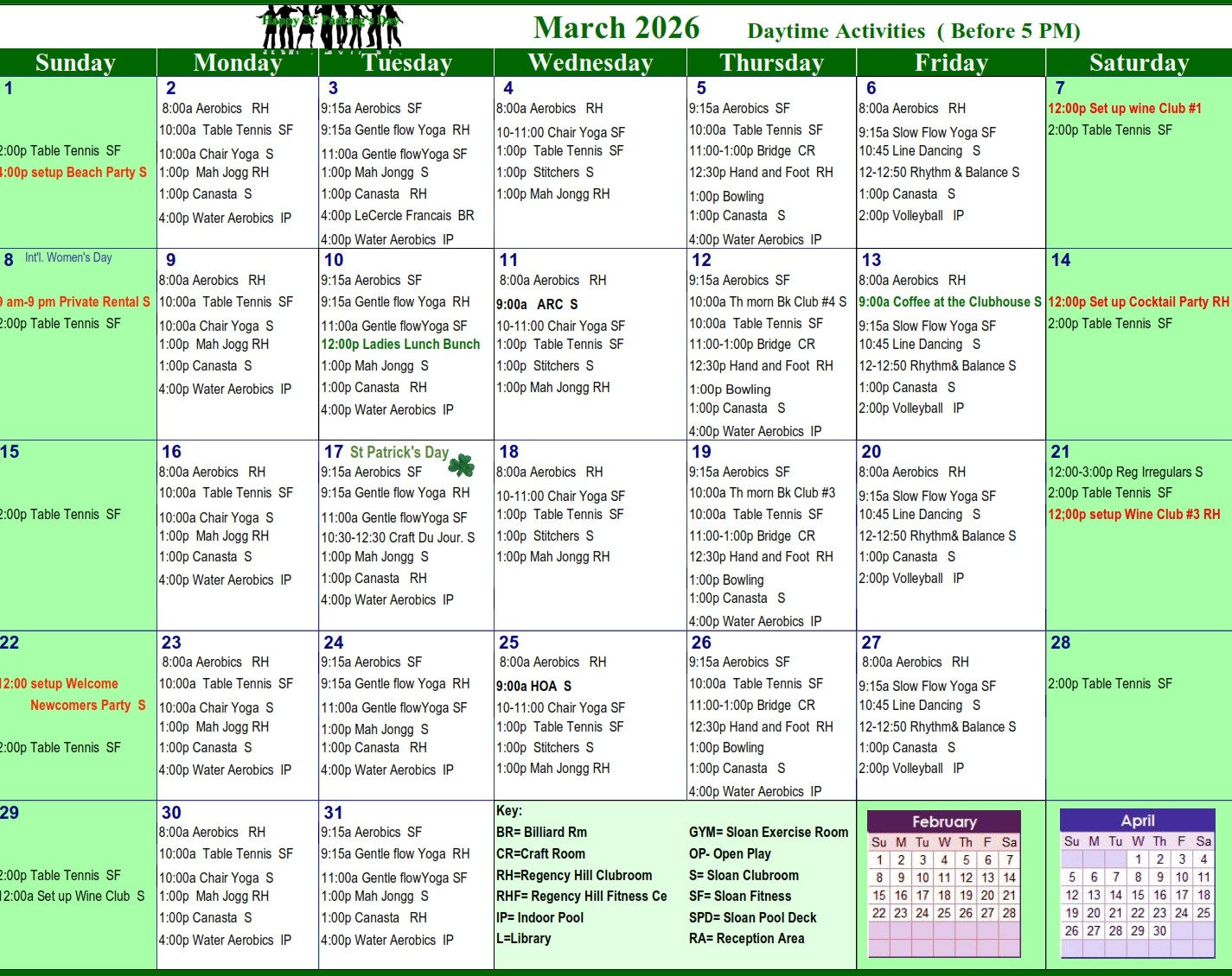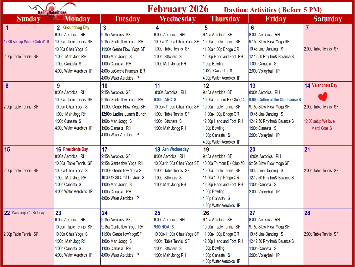 Events in RED have been updated since the Activities Calendar was published in the Newsletter